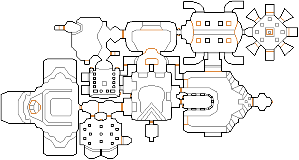 - As you enter the exit chamber two sections of wall in the previous room will lower (the two depictions of figures worshiping a chained man), return to the one you passed as you entered the room and ride it up. By the time you reach the top you will be able to access a room looking over a lava chamber you were in earlier, entering this is the only official secret, although there are several other well hidden locations in the level.